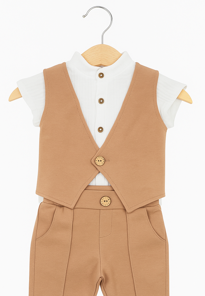 Elegancka kamizelka ALEKS beżowa dla chłopca na chrzest