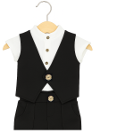 Kamizelka została zaprojektowana tak, aby łączyć elegancję z funkcjonalnością. Dzięki elastycznej, miękkiej dzianinie dresowej kamizelka nie krępuje ruchów dziecka, co ma ogromne znaczenie podczas uroczystości, gdy maluch jest w ciągłym ruchu.