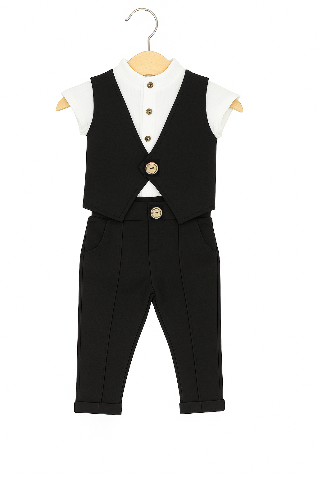 Elegancka kamizelka ALEKS czarna dla chłopca na chrzest