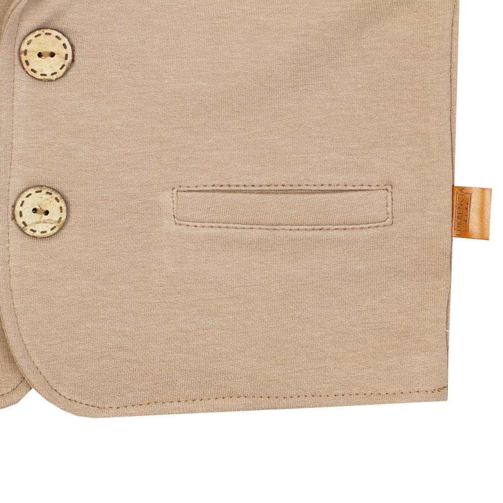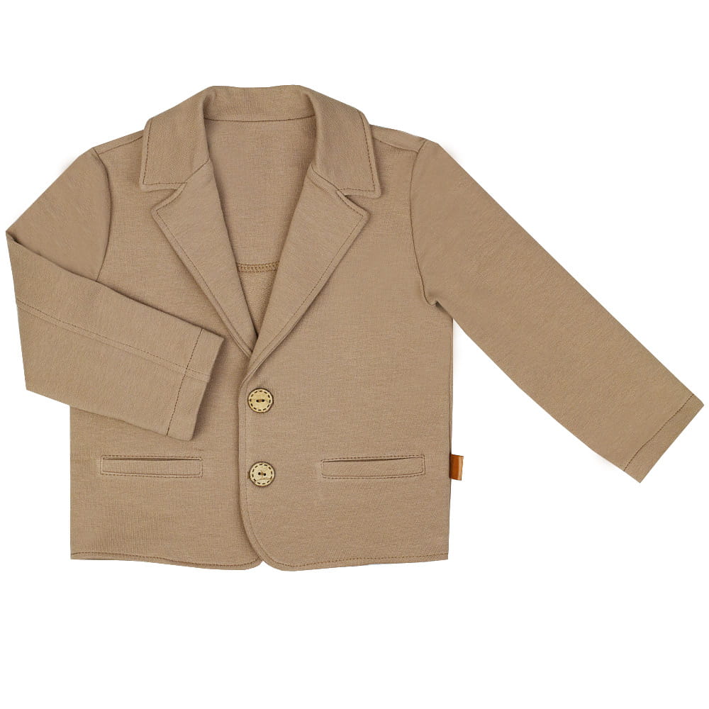 Marynarka to męski atrybut garderoby, który podkreśla doniosłość sytuacji. Zestawiona z eleganckimi spodniami i białą koszulą będzie prezentować się szykownie i z klasą. Wybierając marynarkę dla dziecka trzeba jednak pamiętać, że nie tylko wygląd się liczy. Dziecko przede wszystkim ma czuć się komfortowo i swobodnie. Marynarka wizytowa Janek wykonana jest z dzianiny dresowej, dzięki czemu nie krępuje ruchów dziecka, nie jest sztywna i niewygodna.