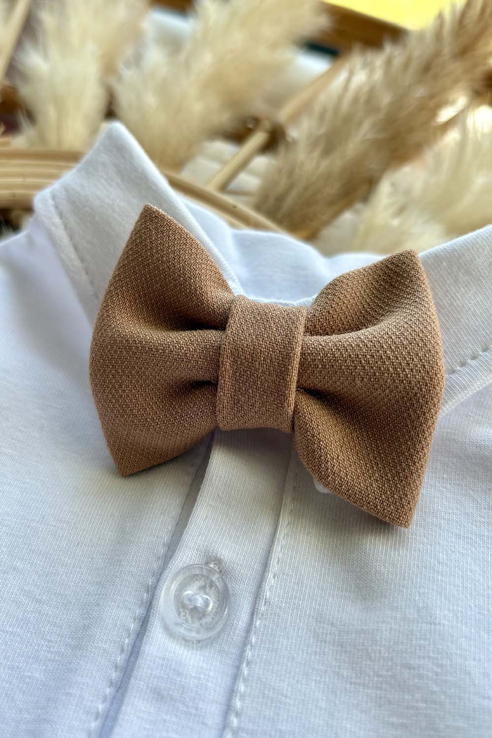 Co ważne kolor karmelowy to jeden z najbardziej trendujących odcieni w stylizacjach dla maluchów. Muszka dla chłopca doskonale sprawdzi się na chrzest - szczególnie wiosną i latem oraz na inne ważne dla Was uroczystości. W naszym sklepie internetowym muszka uzupełnia stylizację do garnituru KASJAN.