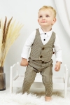 Eleganckie spodnie BARTEK brązowa pepitka na chrzest