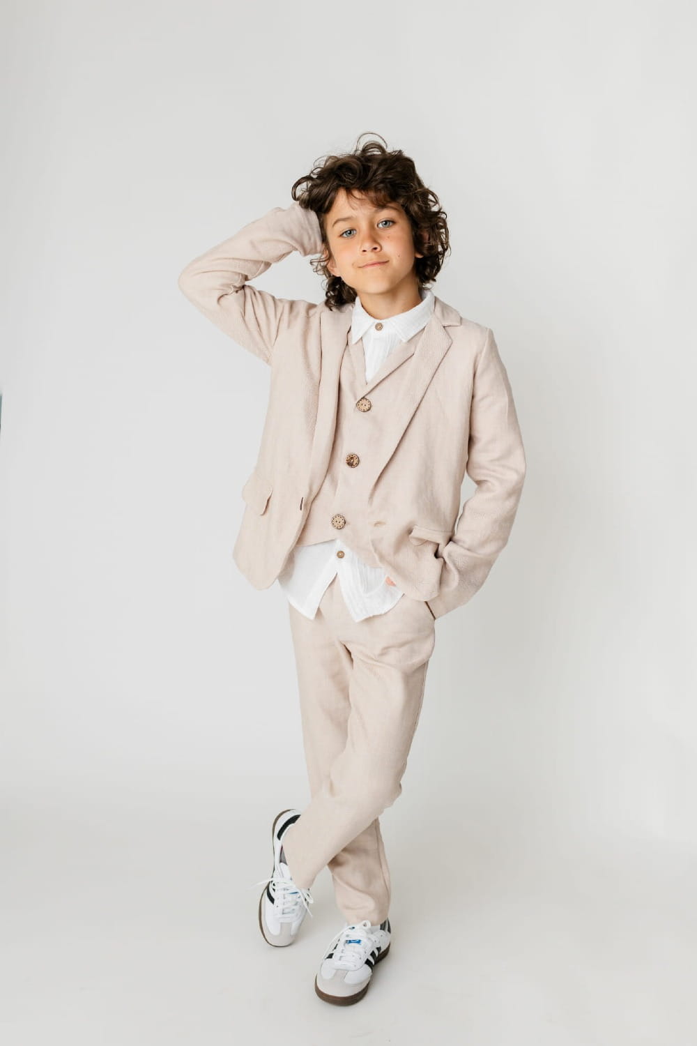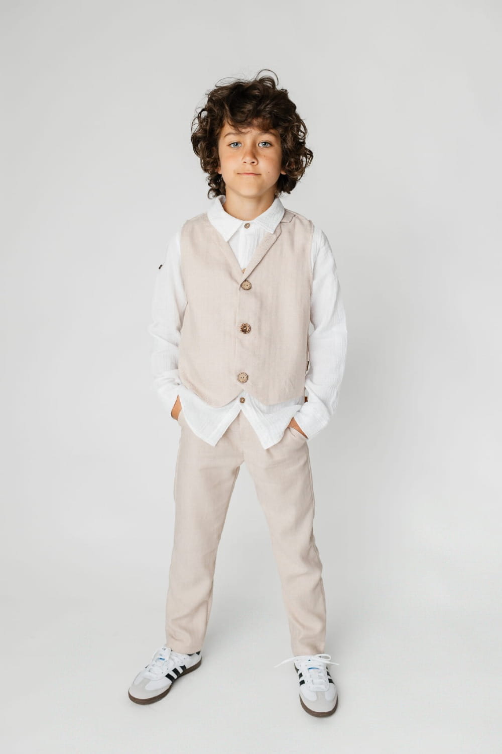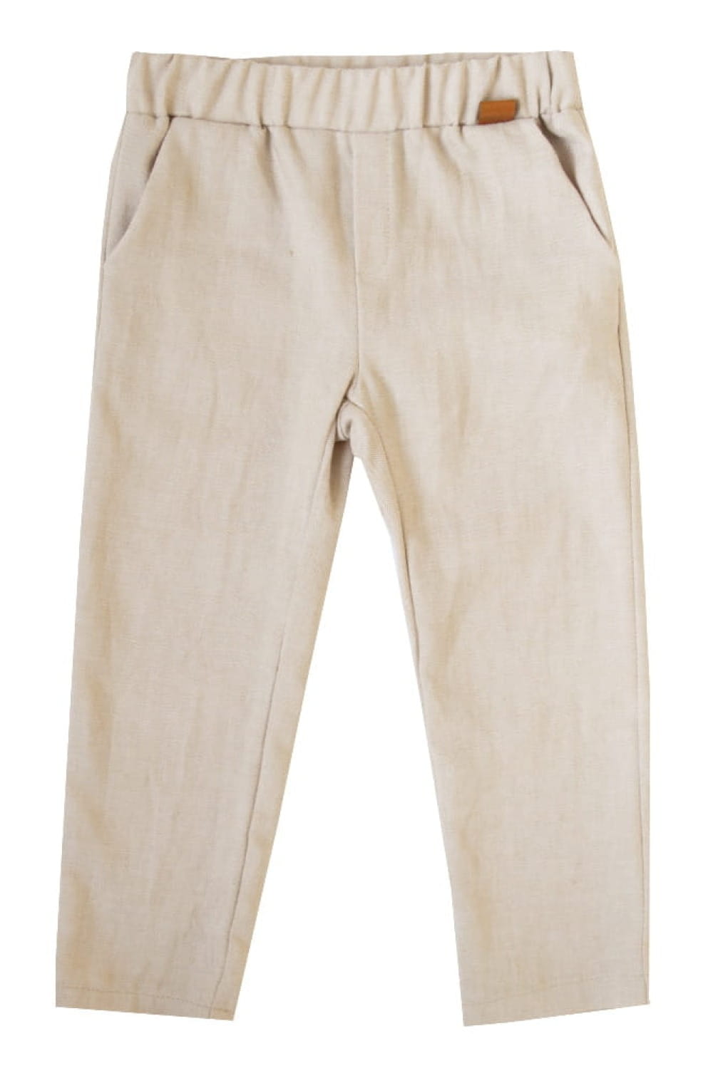 Eleganckie beżowe spodnie dla chłopca z lnem Franek - komfort w ciepłe dni.