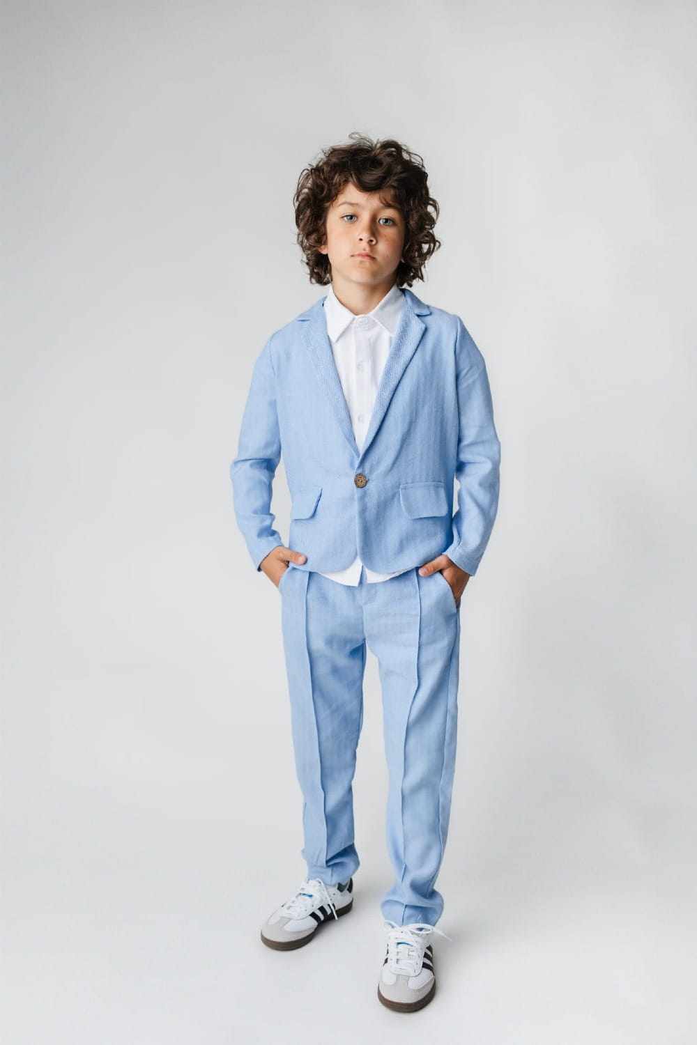 Niebieskie spodnie dla chłopca z lnem Franek - elegancja w ciepłe dni.