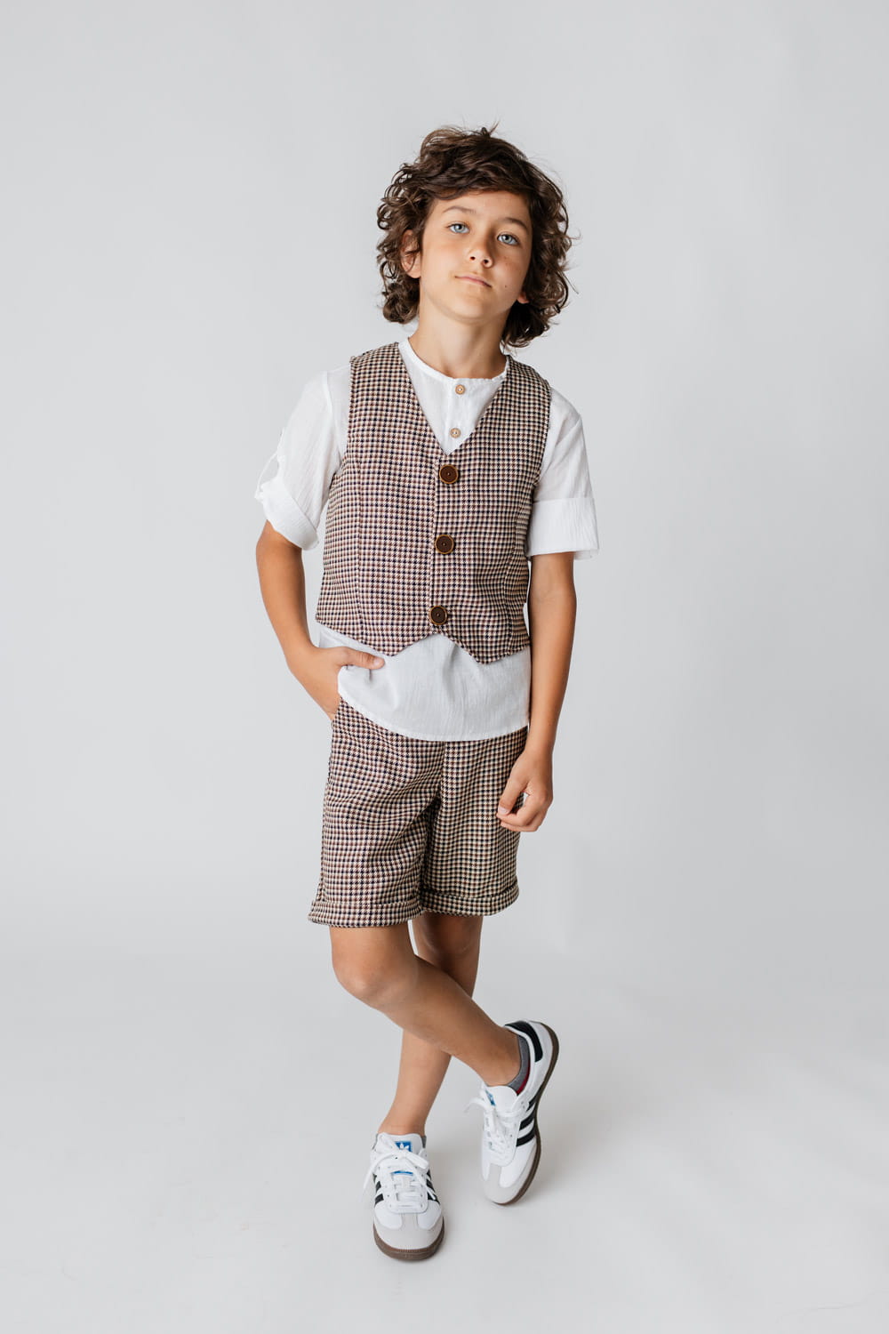 Koszula dla chłopca wykonana w 100% z bawełny w kolorze białym. Koszula wykonany jest z batystu - jest to bardzo cienka, delikatna oraz lekko kreszowana bawełniana tkanina o splocie płóciennym. Krótkie rękawy z zapinanym na drewniany guzik, ozdobnym mankietem. Zaokrąglony dół i dłuższy tył. Elegancka koszula boho posiada dekolt w stylu polo zapinany na dwa drewniane guziki. Naturalny materiał, z którego koszula została uszyta jest bardzo lekki i przewiewny, a luźny fason gwarantuje najwyższy komfort.