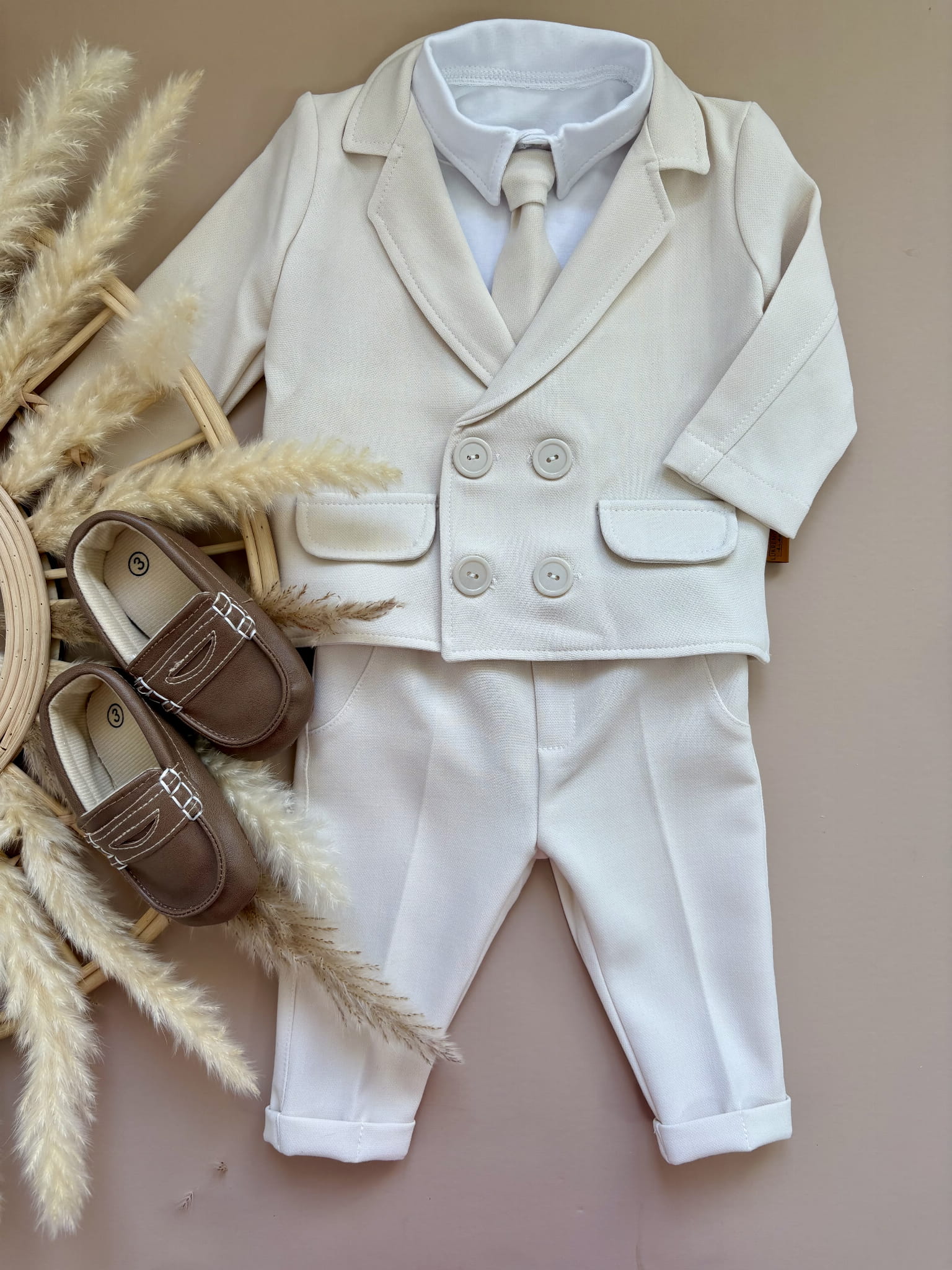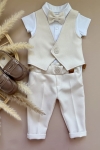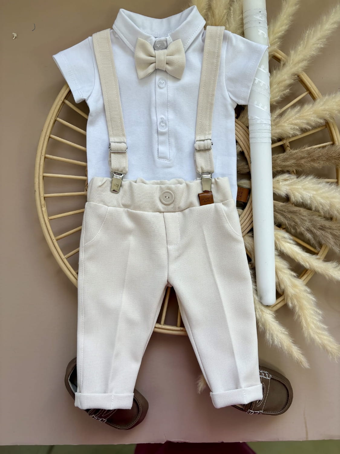 Spodnie KASJAN beżowe na chrzest dla chłopca eleganckie