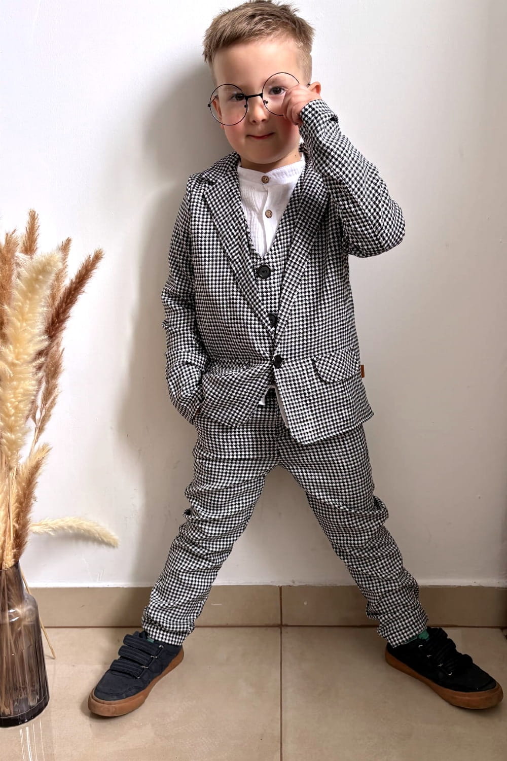 Stylowa marynarka TOMEK czarno-biała pepitka dla chłopca