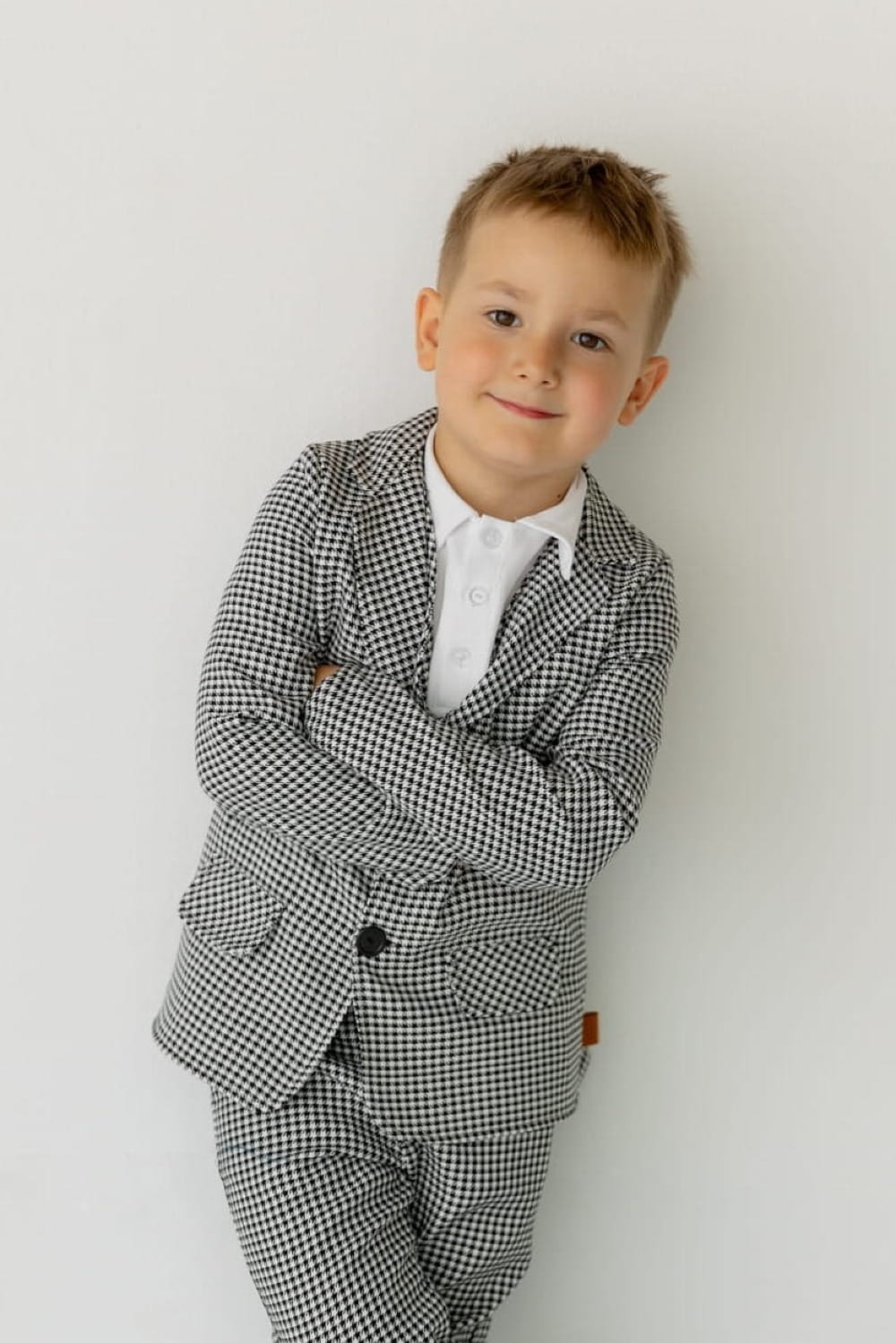 Marynarka w pepitkę dla chłopca – eleganckie ubrania wizytowe na wesele, chrzest i uroczystości