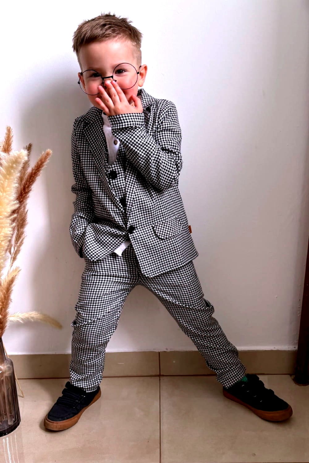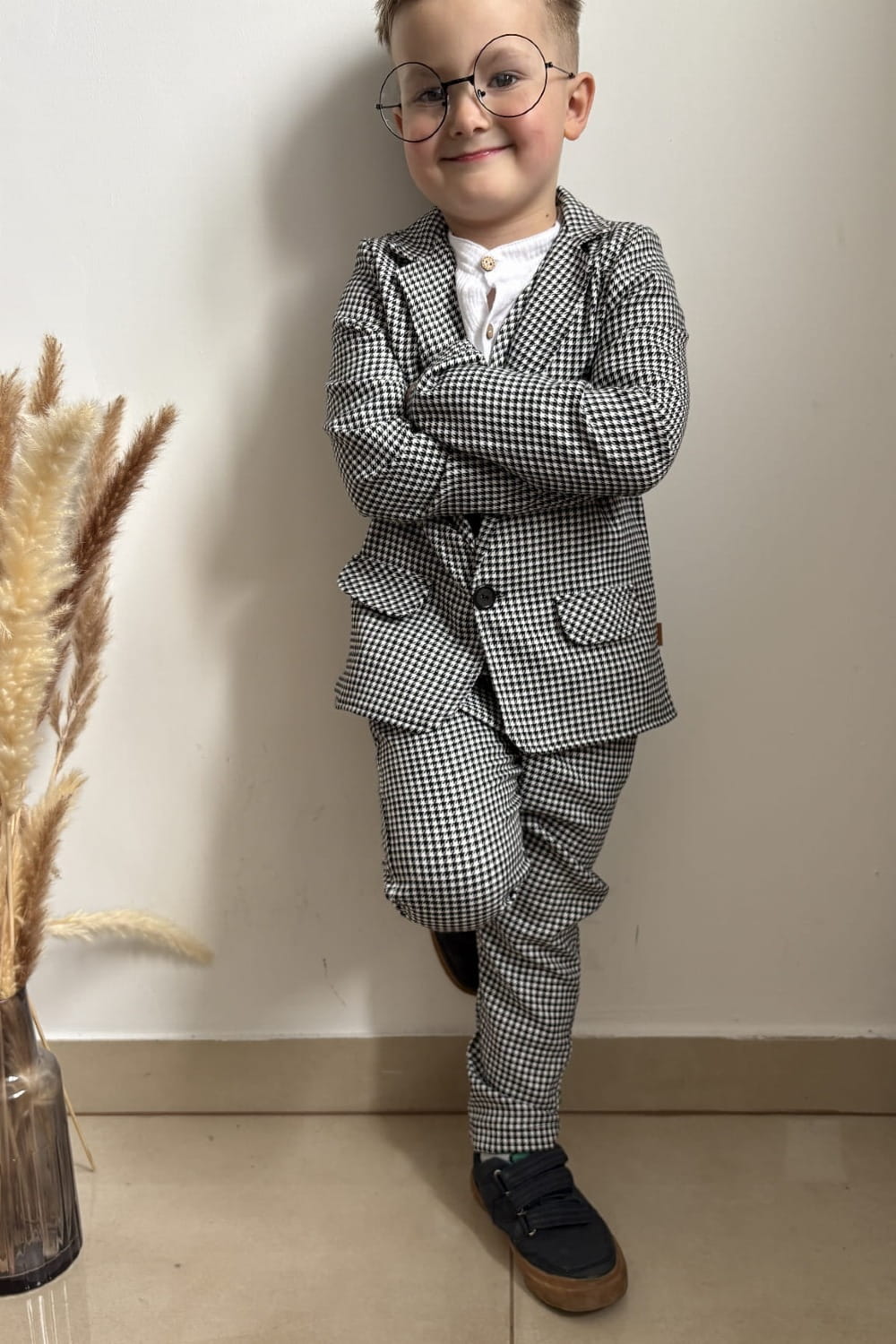 Elegancki zestaw dla chłopca JACK pepitka czarno - biała.