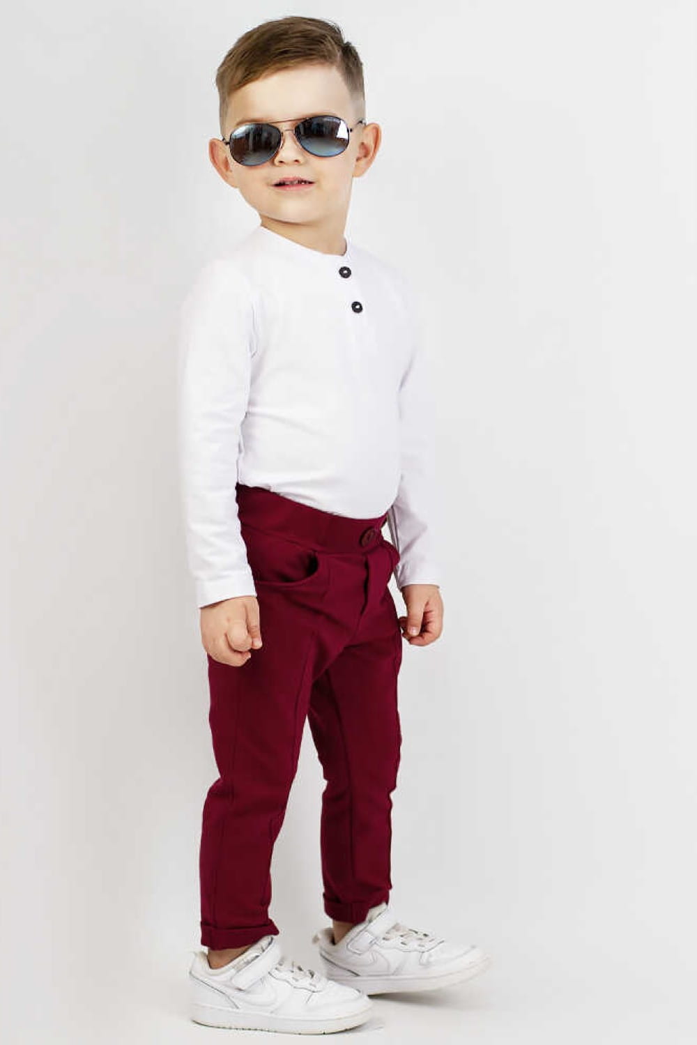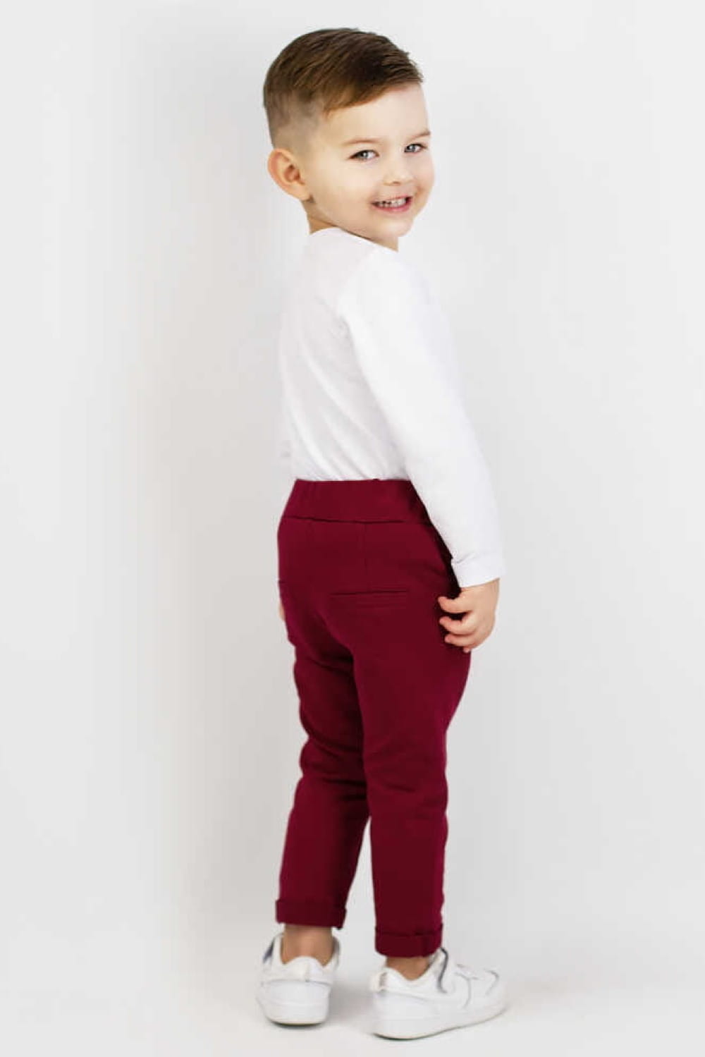 Wizytowe spodnie BRUNO bordowe w kant dla chłopca