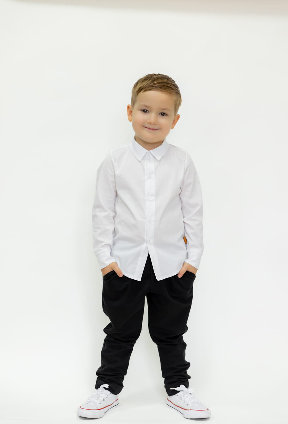Spodnie Szymon w kolorze czarnym to klasyka, która sprawdzi się zawsze. W połączeniu z białą bluzką z długim lub krótkim rękawem idealnie nadadzą się na szkolne i przedszkolne i akademię. Na ważne rodzinne uroczystości warto zestawić spodnie Szymon z identyczną kolorystycznie marynarka Janek lub z blezerem Tymon. Z powodzeniem wykorzystasz spodnie te w kolorze czarnym również na co dzień, do przedszkola, szkoły na spacer.