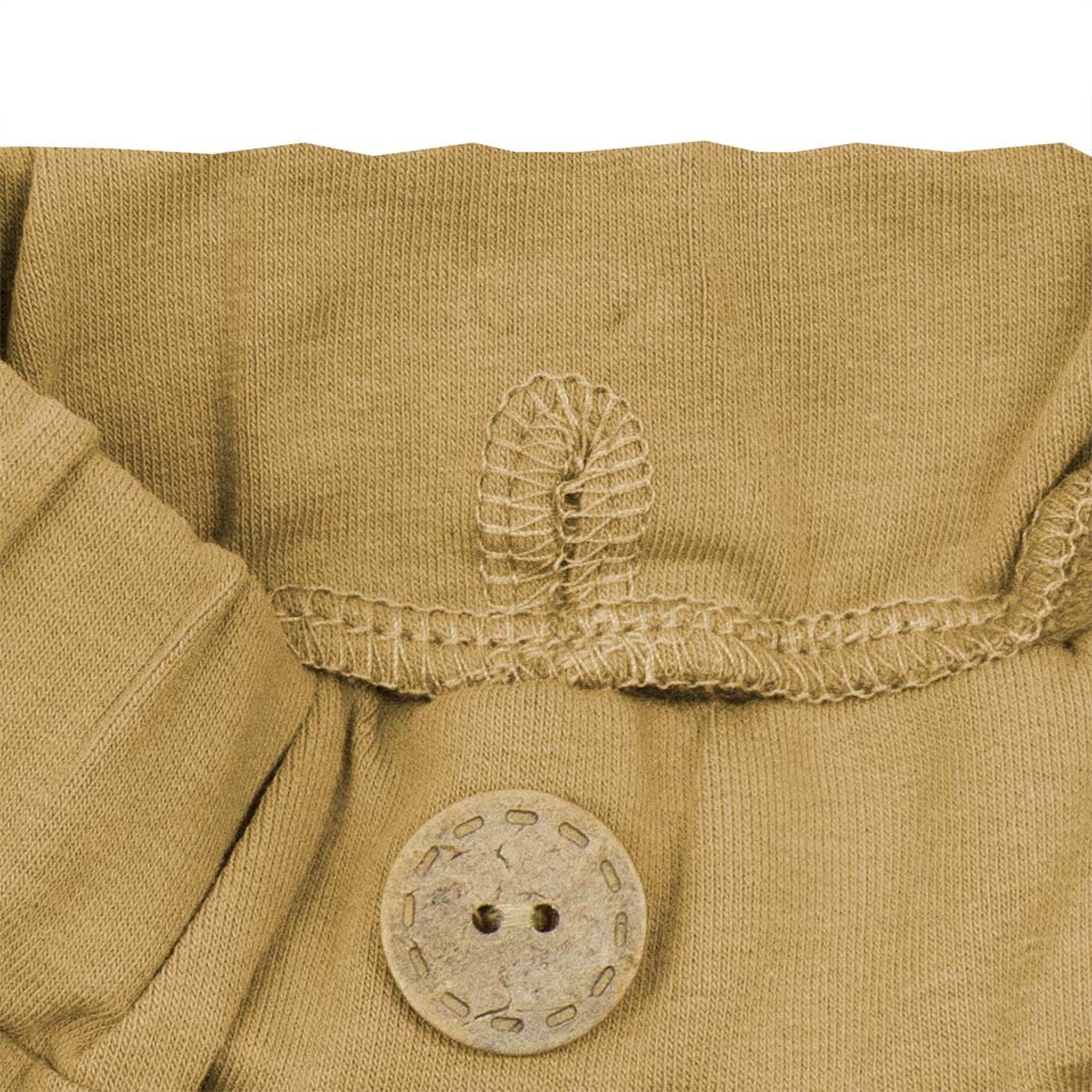 Spodnie Bartek wykonane są z dzianiny dresowej, czyli bawełny z dodatkiem elastanu. Bawełna zapewnia komfort noszenia, a dzięki dodatkowi elastanu spodnie dobrze dopasowują się do sylwetki. Spodnie ozdobione są imitacją kieszonek, dzięki czemu ładnie układają się na biodrach oraz dekoracyjnym elementem w postaci drewnianego guziczka. Ich wielką zaletą jest zastosowanie regulowanej gumki w pasie, dzięki której nie musisz obawiać się, że spodnie będą za luźne w pasie.