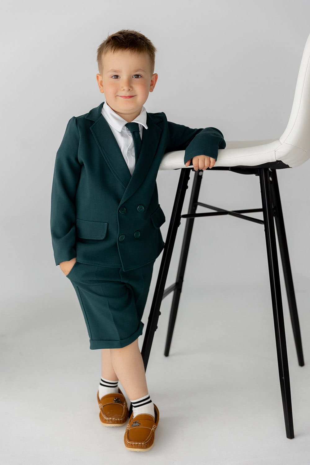 Elegancki garnitur dla chłopca butelkowa zieleń w rozmiarze 116/122